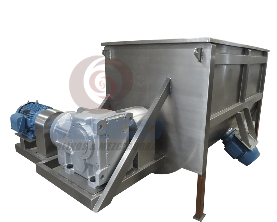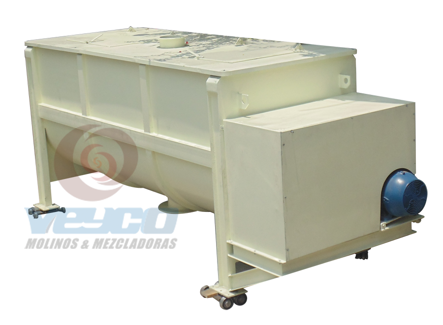 Este equipo se forma de una tina horizontal en forma de U y un mezclador de cinta alineado sobre un eje, el mecanismo de sucesión del equipo se refiere a que una de las cintas empuja lentamente los sólidos hacia atrás, mientras que la otra cinta los desplaza rápidamente hacia adelante, mueve los materiales radial y lateralmente para asegurar mezclas a fondo en tiempos de ciclo cortos. Los agitadores de cinta se utilizan para mezclas que estarán entre el 30 – 90 % de la capacidad nominal del mezclador, cuentan con dos formas de mezclar los productos: