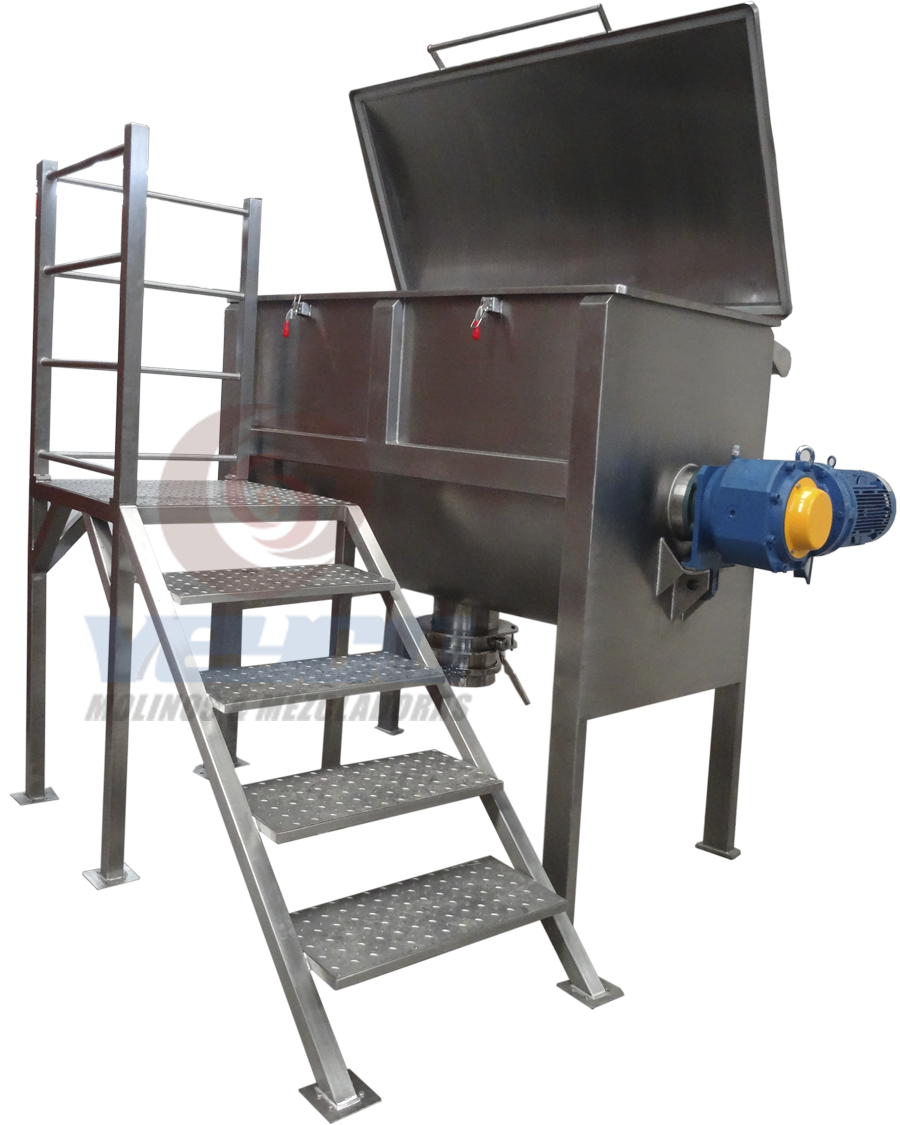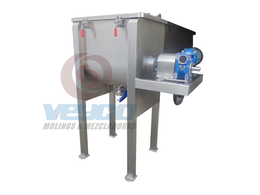 Es la máquina ideal para el mezclado de productos pastosos y grumosos; la acción de las paletas consiste en el “golpeteo” del producto hasta desintegrar los grumos, logrando una mezcla uniforme. Esta mezcladora puede trabajar por “batch” o carga (dependiendo del producto, la mezcla puede tardar de 5 a 20 minutos) o bien en forma continua adaptándole una tolva de carga en el extremo superior izquierdo y una tolva de descarga en el extremo inferior derecho, en donde el producto es “arrastrado” por la paletas de un extremo a otro, dichas paletas se inclinan de tal forma que se logra el arrastre del producto de izquierda a derecha. Existen diferentes tipos de “paletas” dependiendo del producto a mezclar; asimismo, se le puede adaptar uno o más desaglomeradores (CHOPPERS) para facilitar el rompimiento de grumos.