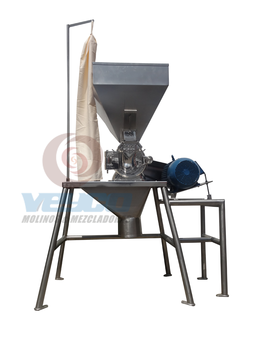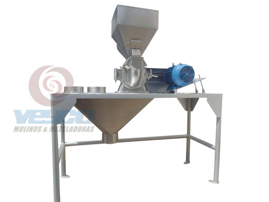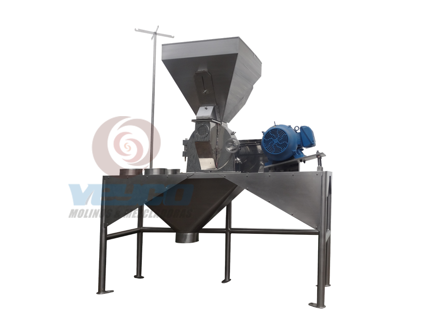 Los pulverizadores VEYCO son molinos con un sistema de molienda de alta velocidad diseñados para un funcionamiento continuo a velocidades hasta 6,000 RPM. El producto puede ser alimentado por medio de una tolva de carga y dosificadores de alimentación, una entrada de succión, un conjunto de inyectores o puede ser alimentado por gravedad, dependiendo de sus propiedades. La trituración es el resultado de que el producto de alimentación impacta contra la turbina y el revestimiento instalado en la cubierta de la carcasa del molino, dicho producto sale a través del cuerpo hermético atraves de la criba o malla.Los MOLINOS VEYCO pulverizan toda clase de productos: